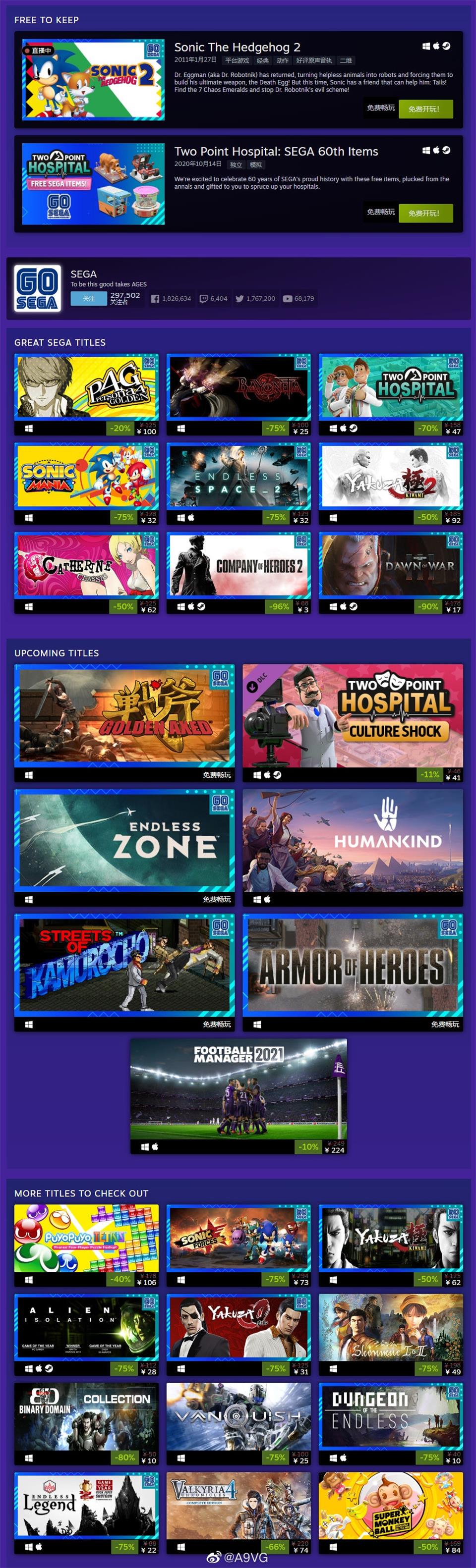 SEGA 60周年庆典页面现已在Steam上线,包含大量活动内容: