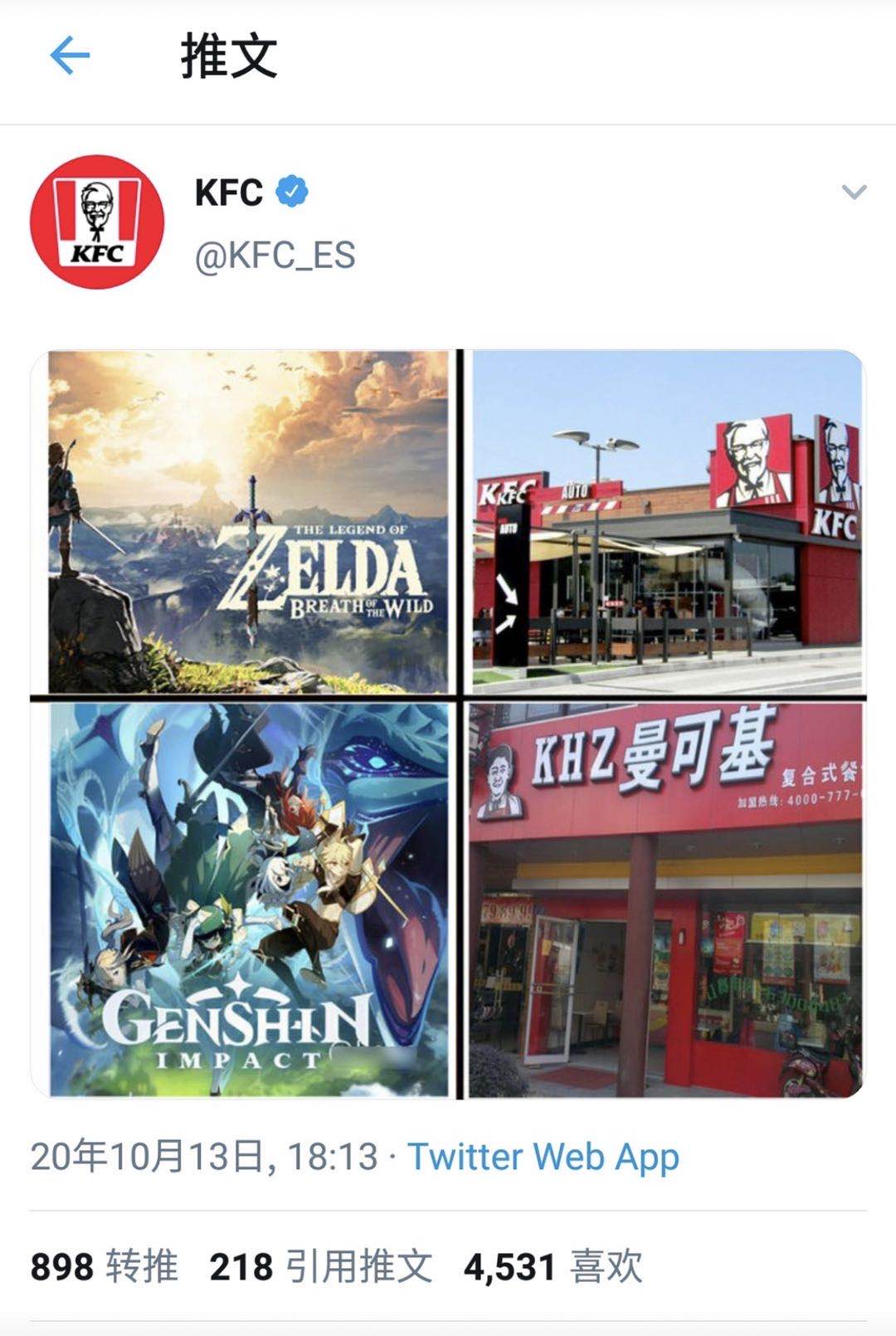 看来kfc还是怂了。好奇去推特看了看,发现已经没有这条推文了,看来是怂了,被外国的原神粉丝冲没了,我直呼:就这