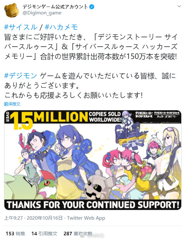 万代南梦宫今日宣布,《数码宝贝物语 网路侦探》与《数码宝贝物语 网路侦探 骇客追忆》全球累计出货量突破150万。