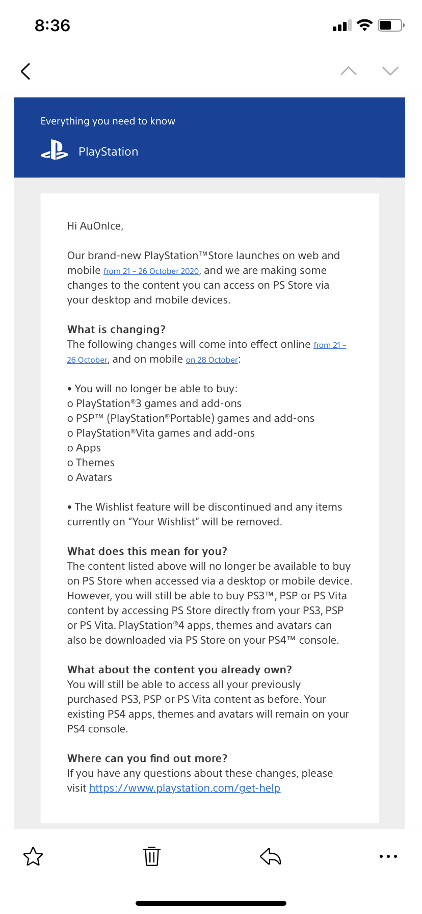 @sayamiki 其实我是想说大家不要那么过激而已,数字商店肯定迟早要关的,现在还只是关网页而已,说不定以后主机还会关了,就像psp现在已经不能访问商店了。上架了新商品老商品就会停产下架很正常,3公主已经快14年了也差不多该全面退役了,索尼不全部关闭已经算好了。老任那边像wii的所有网路服务都不能用了。。。3ds和wiiu时代nnid这玩意在ns出来以后全部作废改成nintendo account。现在就等3ds和wiiu的eshop彻底关闭了。我觉得这操作后3和v也离全面退役不远了,彻底成为历史了。而且说实话现在3和v数字商店可能真的挣不到啥钱骚尼才考虑削减网页版不是吗。。。
