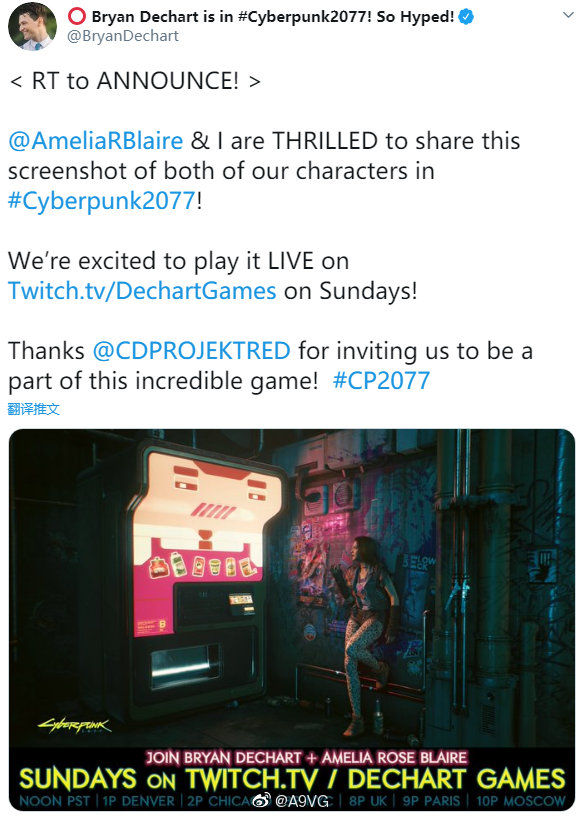 曾在《底特律 成为人类》中饰演康纳和崔西的 Bryan Dechart 与 Amelia Rose Blaire 夫妇近日宣布,他们参与了《赛博朋克2077》的配音工作,在游戏中二人将分别扮演两个NPC角色,二人还同步分享了一张宣传图。