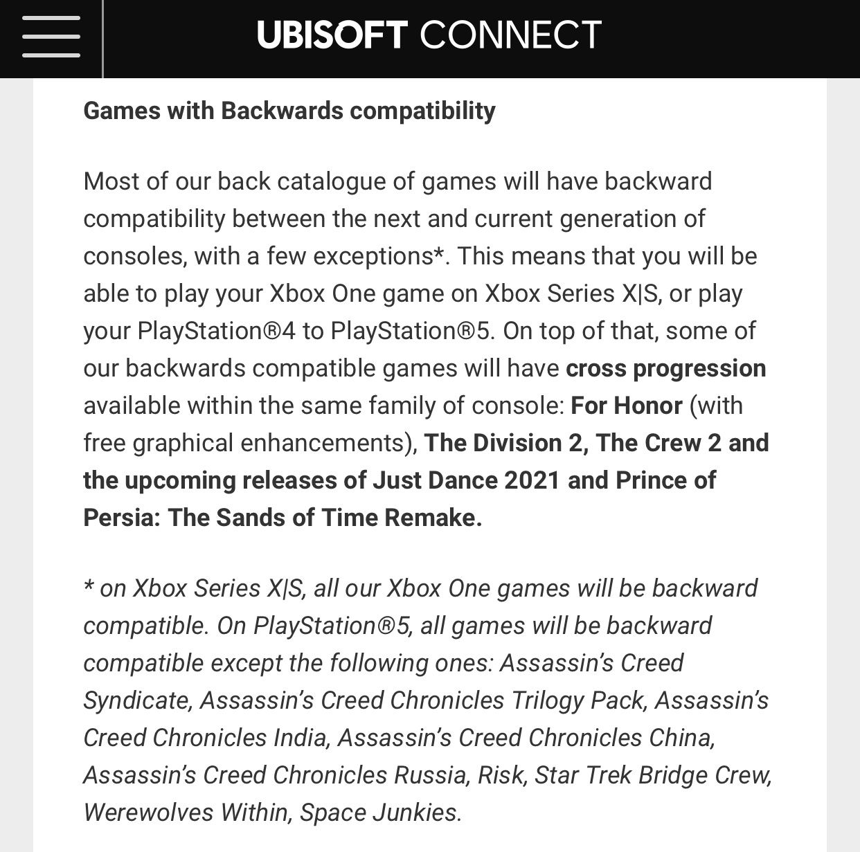 一名育碧代表告诉外媒Gematsu,“我们已经撤下了目前关于向下兼容的育碧Connect文章和论团发帖,因为在育碧游戏是否能在PS5游玩问题上,存在不准确性。”