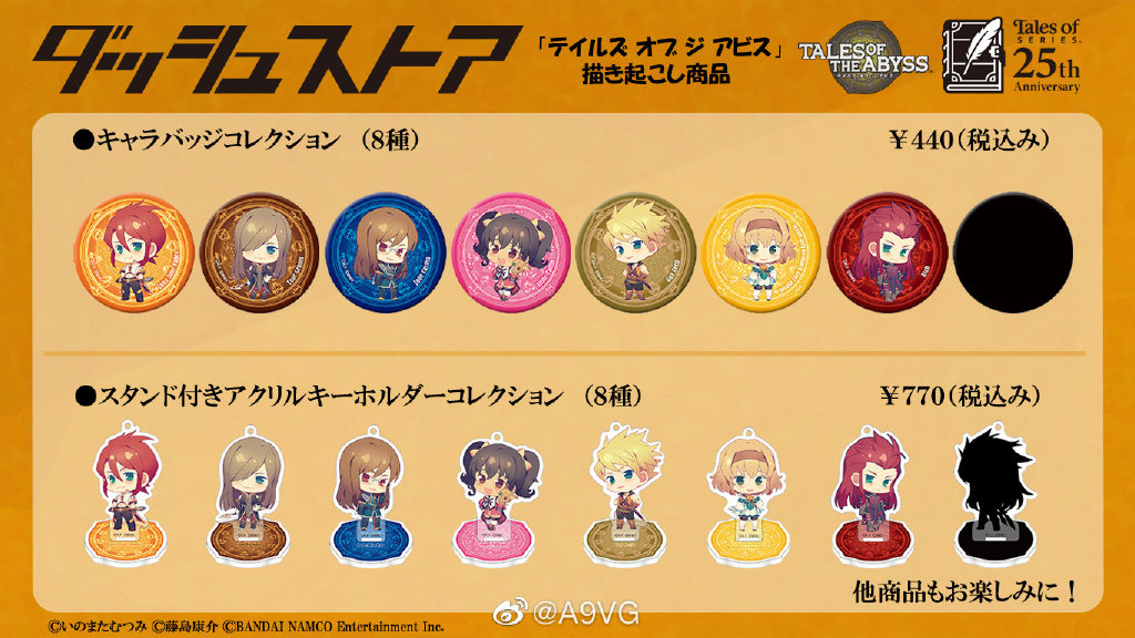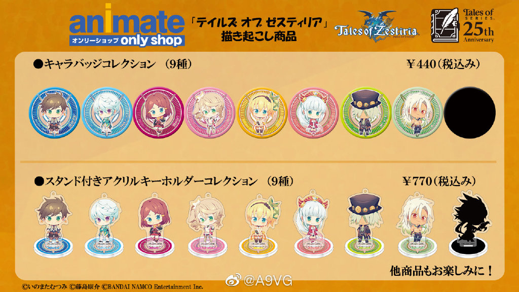 「传说系列」25周年纪念企划第三弹情报解禁,系列25周年外,《深渊传说》与《热情传说》也在今年各自迎来了发售15周年与5周年,为纪念万代南梦宫与Animate及Dashstore合作推出了这两款作品的新周边。此外,「传说系列」主题商店也将于2021年1月16日~2月14日期间在池袋营业,详情今后公布。