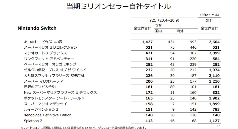 本日任天堂公开了财报,包括销量前十和一些热门游戏