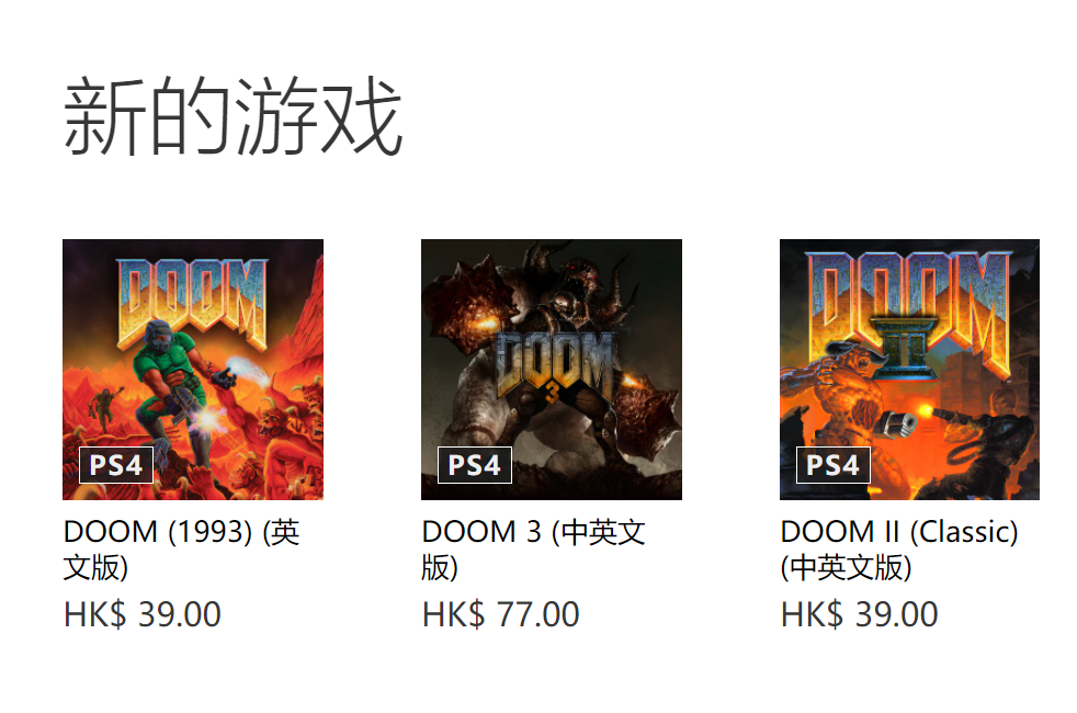 今天逛商店发现了重新上架的DOOM经典作品,但是与之前下架的日英版不同的是:2代和三代新上架版本显示的是中英文版,不知是确实加入了中文支持还是港服临时工输错语言