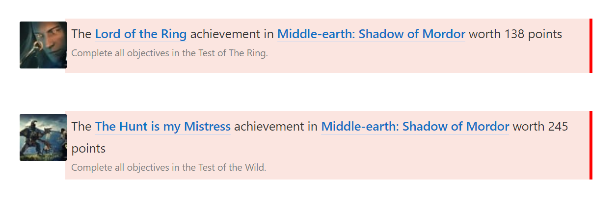 When WB Games announced the servers for Shadow of Mordor's Vendetta missions and leaderboards would soon be closed, it was believed that just the Repaid in Blood achievement from both games would be discontinued. As it turns out, two more achievements from each game will also be unavailable to unlock after December 31st.