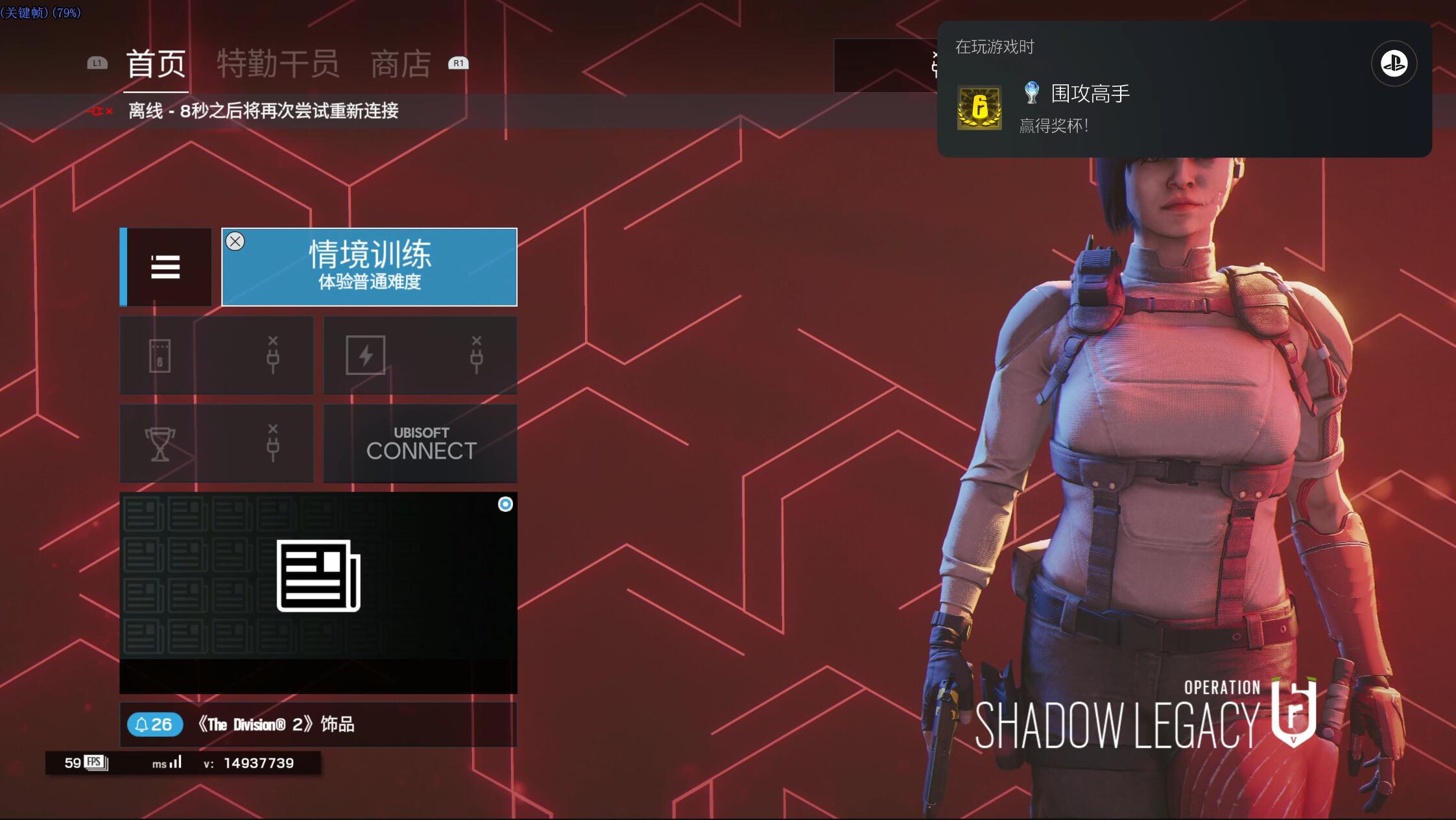 PS5彩虹六号今晚更新了,如果你ps4白金了的话,PS5会在你开游戏的时候,全跳杯直接白金