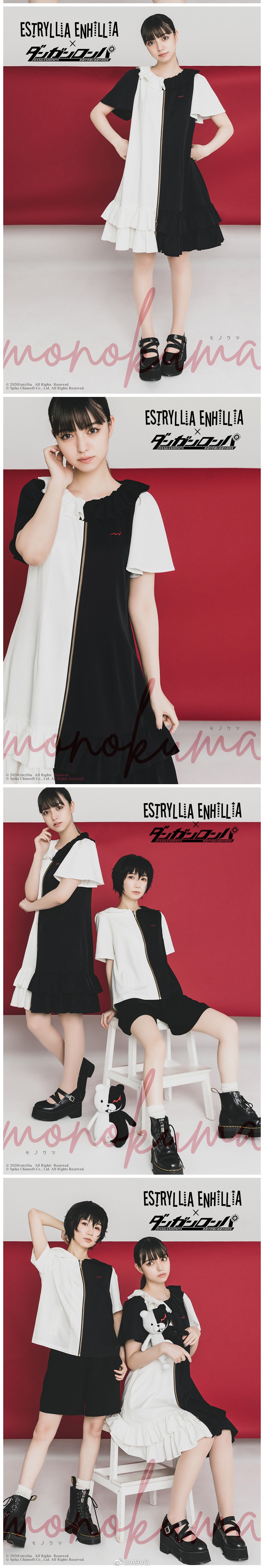 潮牌ESTRYLLIA ENHILLIA宣布与《弹丸论破 希望学园与绝望高中生》实施联动,推出黑白熊、苗木诚、雾切响子、十神白夜、腐川冬子、江之岛盾子主题时尚服装,联动角色立绘一并公布。