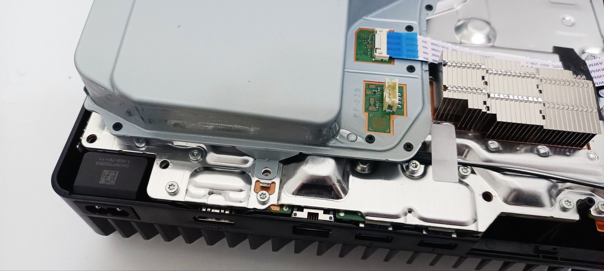 另外PS5的光驱,和PS4 1000/1100 的类似,加密芯片都整合在光驱旁边,也就是说不能随意替换,否则无法升级系统。PS4 1200/Slim/Pro 的光驱基本裸奔,另有三根排线连接,而没有电源线。这种光驱就可以直接替换没有影响。