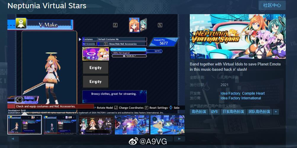 【《VVVTUNE》登陆PC】IDEA Factory国际宣布海王星系列《VVVTUNE》将在2021年在欧美推出PC版及PS4版(欧美名《Neptunia Virtual Stars》),目前已上架Steam,支持繁体中文。