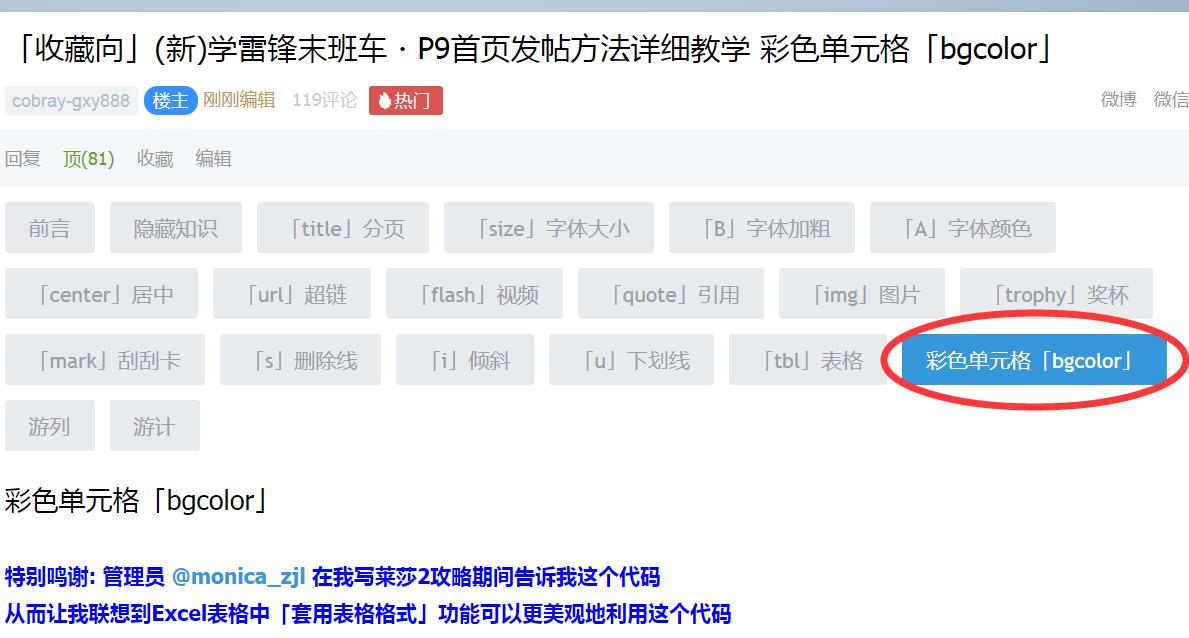 长话短说 之前写的发帖教学里增加了表格中 单元格的变色代码