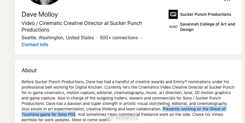 【《对马岛》新作或已在开发】SIE Sucker Punch工作室动画创意总监Dave Molloy不久前更新了自己的领英页面,个人简介中提到参与《对马岛之魂》PS5最新续作的开发。这条更新是在Sucker Punch推出《对马岛之魂》PS5强化补丁之后的事,因此很大概率官方正在基于PS5主机开发后续作品。
