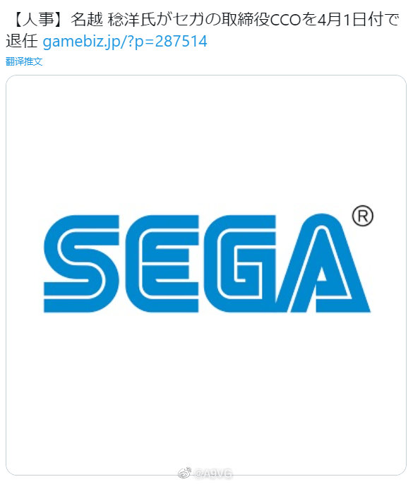 世嘉宣布 原世嘉董事会董事名越稔洋将于4.1日卸任董事会董事 但将继续担任世嘉创意总监