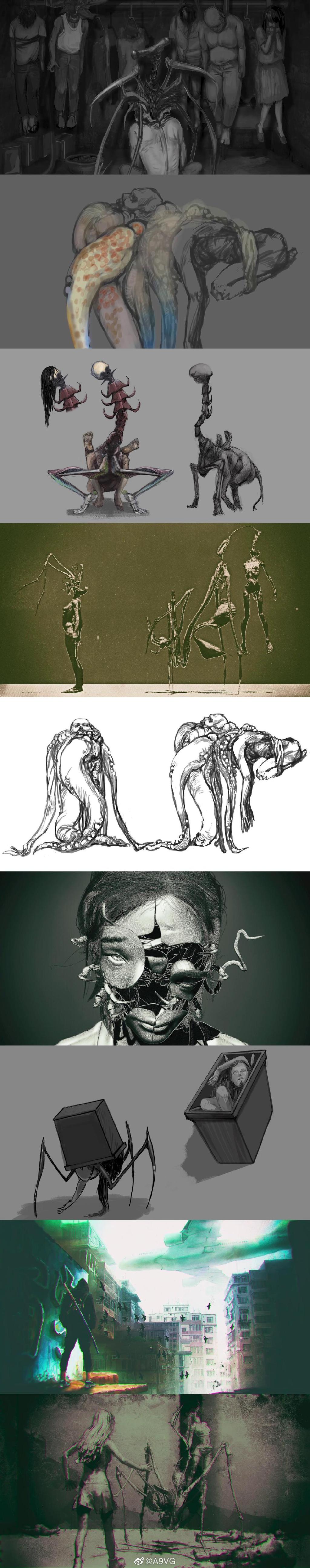 设定图看着挺有意思的。奇行种+缝合怪+寄生体?有点期待。