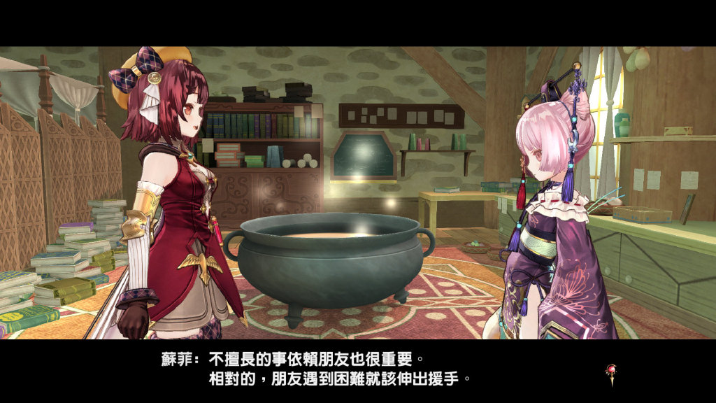 图5:苏菲对作为錬金术士的自己与普拉芙妲和祖母之间的差距而感到烦恼。这时,因为祖母的某句话,她想到了一个打破常规的点子。