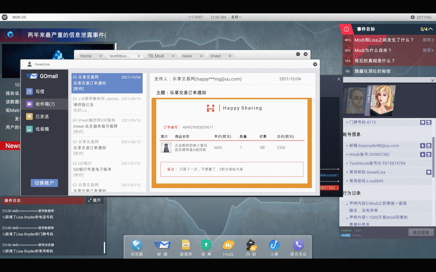 核心玩法:通过社会工程学搜索引擎等手段搜索关键信息并收集,通过社工库撞破目标邮箱 聊天工具密码,从而了解真相。
