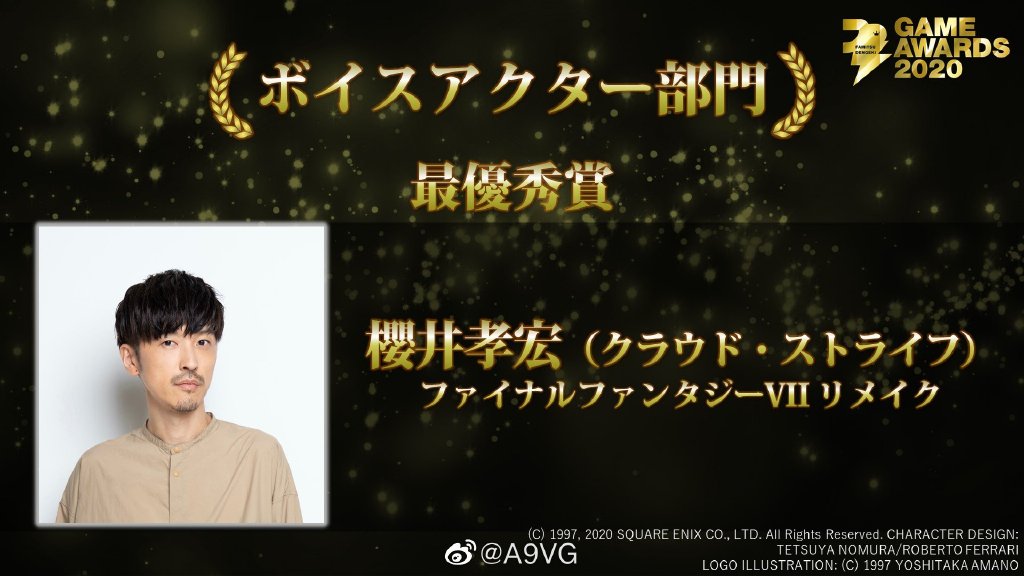 看点2:最佳声优:樱井孝宏(最终幻想7 重制版/克劳德) 恭喜考哥!!