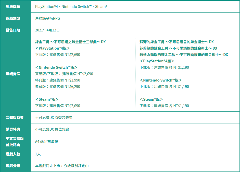 此外今天还公开了《炼金工房 ~不可思议之炼金术士三部曲~ DX》中文实体版首批特典的内容——A4苏菲布海报!数量有限,提供给购买中文首批实体版的玩家限量珍藏!