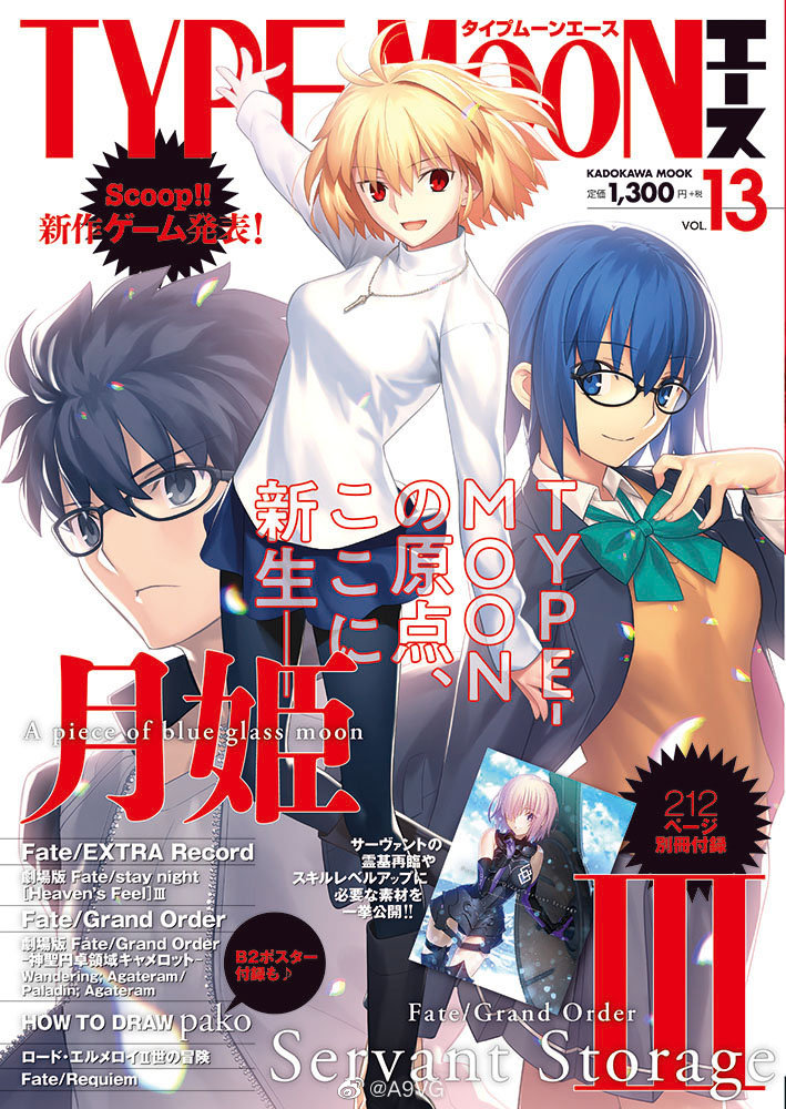 「TYPE-MOONエースVOL.13」封面公开,这期杂志收录有《月姬-A piece of blue glass moon-》新情报,预定于3月26日正式发售。
