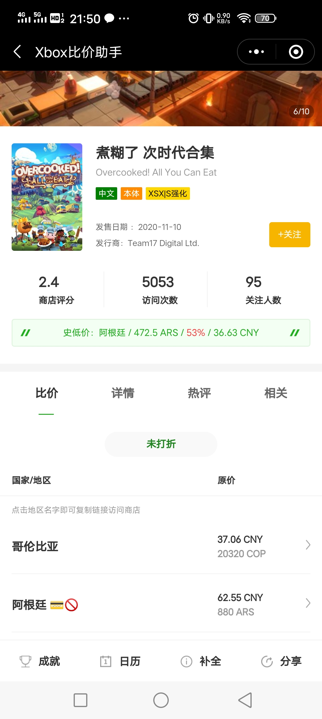 临时工,美服原价50刀,哥伦比亚overcooked合集,37块,实际金会员支付85折,30块左右