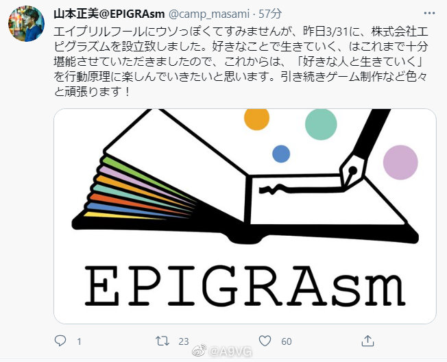 原SIE JAPAN Studio 执行制作人兼外部制作部长「山本正美」已于2月28日从SIE Japan Studio离职,今日他在个人推特上宣布已于3月31日成立了自己的公司EPIGRAsm,今后也将继续从事游戏开发工作。