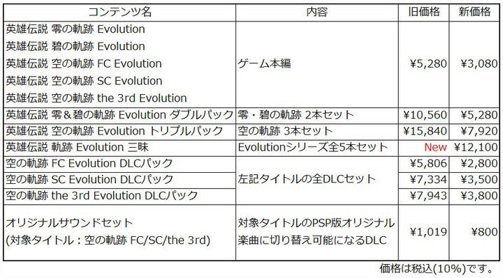 《英雄传说 轨迹 Evolution》系列官方推特宣布,日服PS商店 PSV版《英雄传说 轨迹 Evolution》系列游戏下载版价格将从4月15日起下调,由于PSV游戏商城将于8月27日关闭,此后无法购入新游戏,感兴趣的玩家抓紧机会。