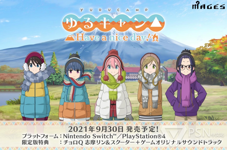 MAGES.推出的PS4/Switch平台游戏《摇曳露营△Have a nice day!》确定将于9月30日发售,售价实体版税后8580日元,下载版7700日元,限定版11990日元。限定版将包含迷你志摩凛&机车与原声音乐集。本作将讲述与TV动画版不同的if剧情,会追加动画中没登场过的新露营场地。