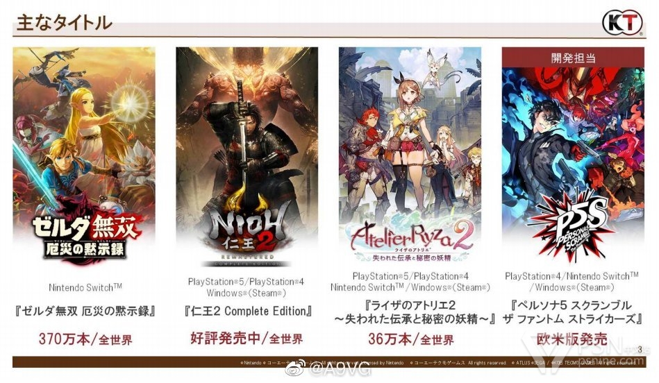 主机游戏方面,《塞尔达无双 灾厄启示录》累计出货量现已突破370万份;《莱莎的炼金工房2》全球累计出货量达36万份,系列两作合计总出货量突破100万。