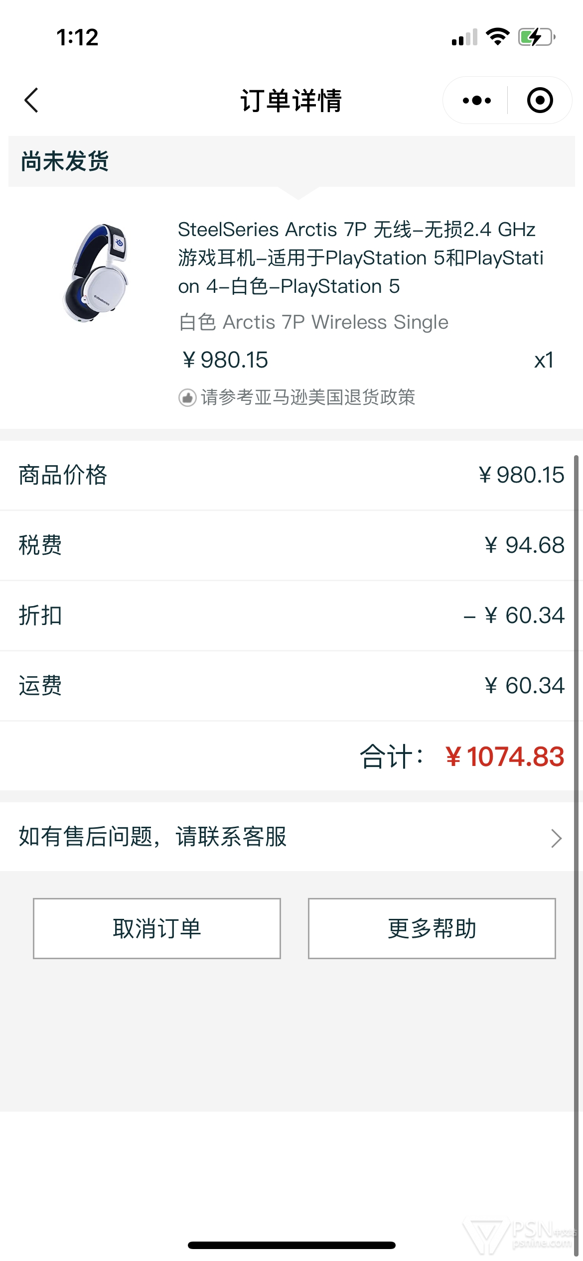 中亚的美亚Arctis 7P补货了,已经是非常好的价格了,最低价1061.07,我直接下了订单反手退掉淘宝的