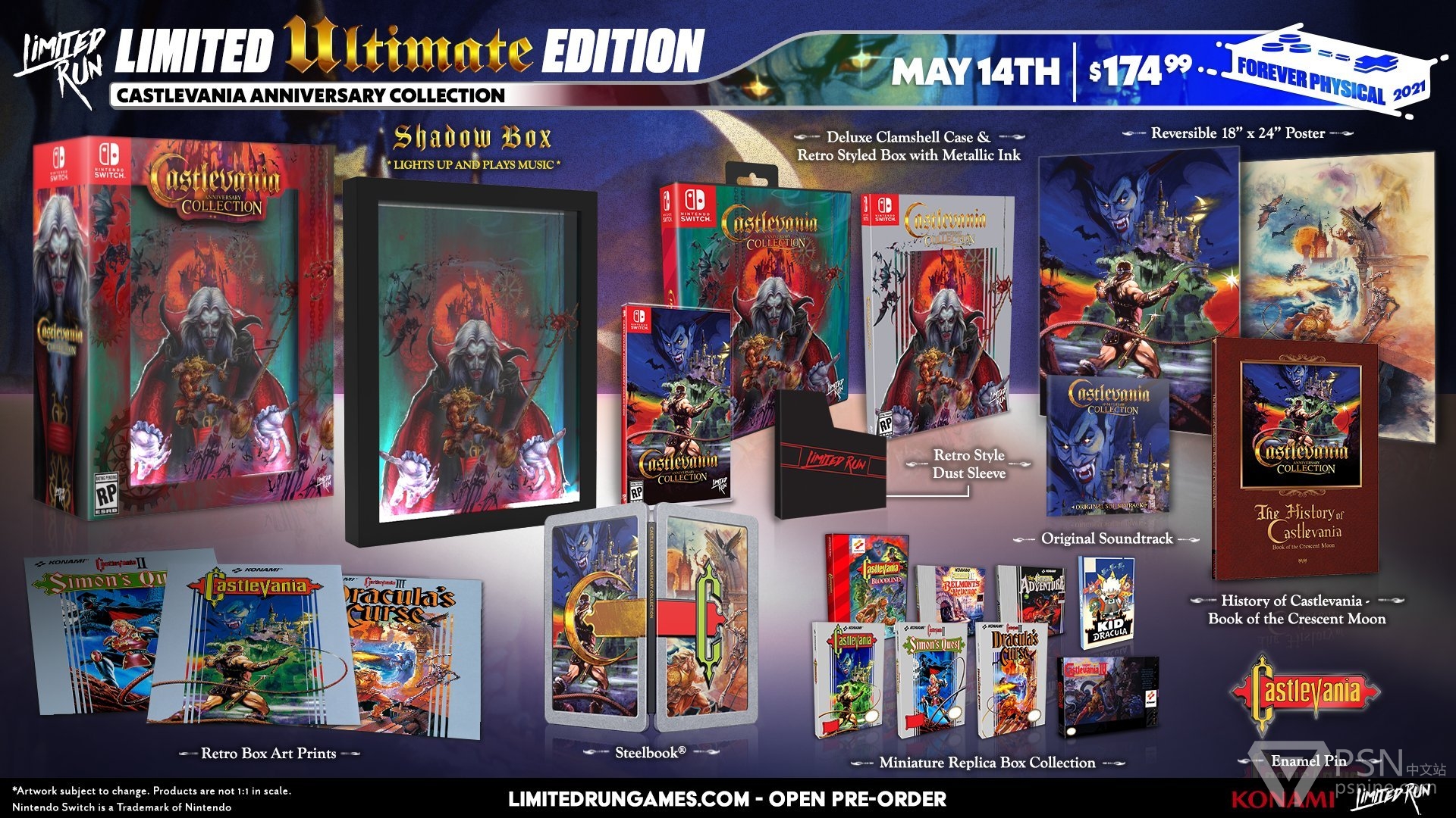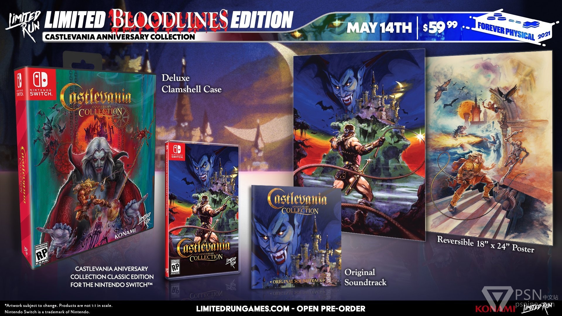 《恶魔城周年纪念合集》将由Limited Run Games发行NS/PS4实体版,5月14日开订,预售期为6周。