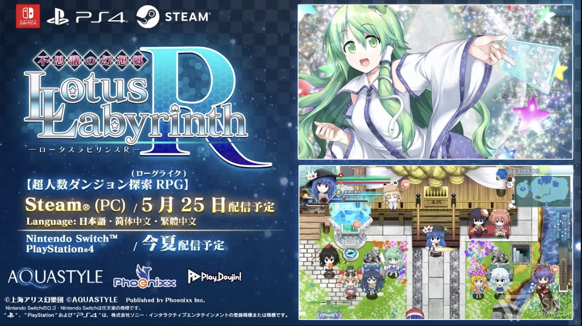 AQUASTYLE近期宣布《不可思议的幻想乡-Lotus Labyrinth R-》《Doublefocus 文与椛的弹丸取材纪行》将于2021年05月25日登录Steam平台,支持简体中文、繁体中文。