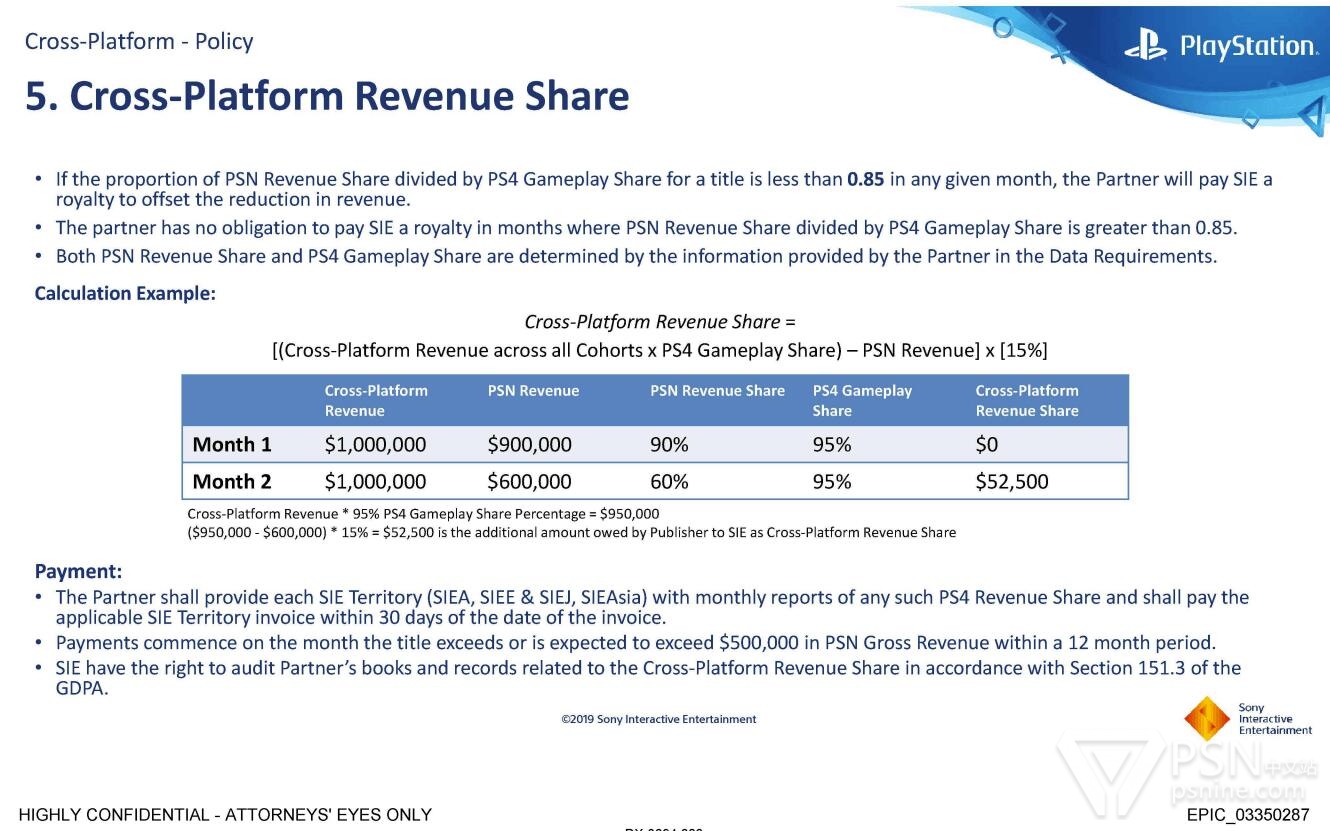 “如果有人主要在PlayStation上玩堡垒之夜,但在iPhone平台上的堡垒之夜上付费购买,那么这种情况下也得向索尼支付赔偿金以“抵消”索尼为了实现跨平台游戏服务的收入减少。”