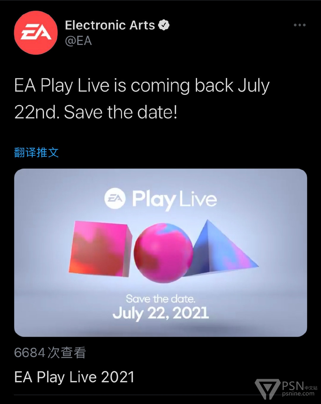 今年的EA Play Live 线上发布会将于当地时间7月22日举行。