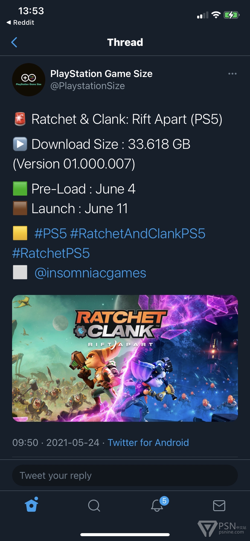 压缩技术的效果,PS5瑞奇与叮当下载版容量33.618GB,6月4日开启预载。上一代2016年的PS4版是25GB,时隔5年横跨一时代安装容量仅增加8GB。