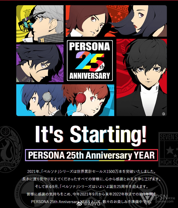 【P系列25周年纪念官网上线】来了!ATLUS上线《女神异闻录》系列25周年纪念特设网站,网站上预告未来除了纪念周边、各种活动、联动外,还会有游戏相关新情报发表,敬请期待!