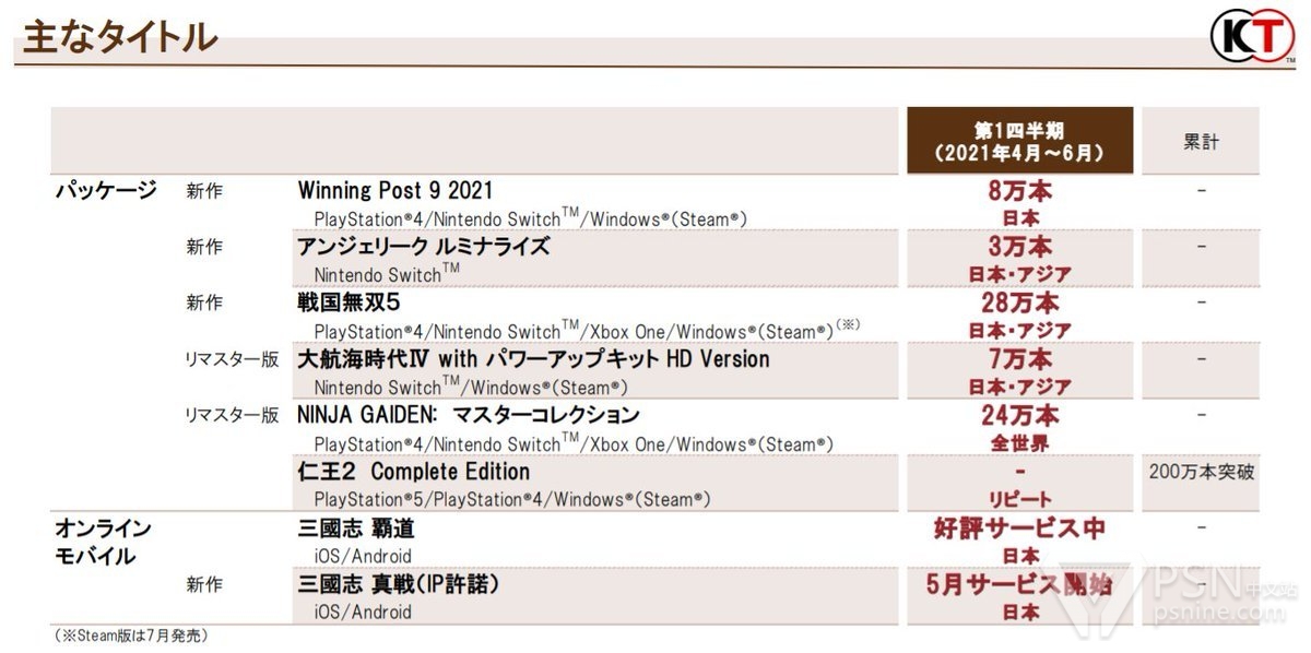 光荣特库摩财报介绍今年部分游戏销量(图1)以及未来的游戏发售计划(图2)