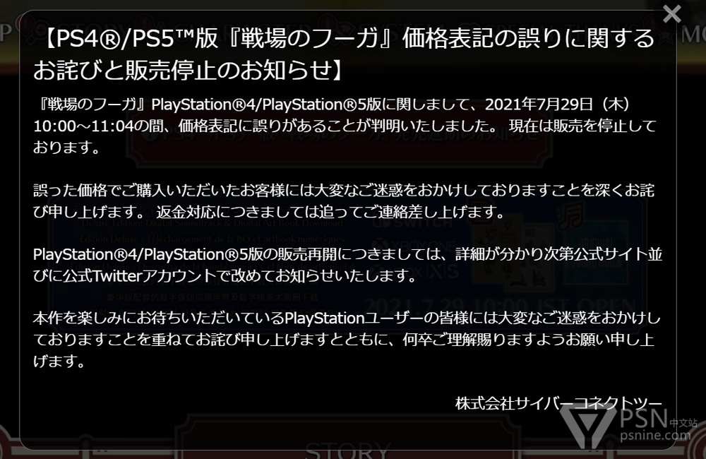 于今日发售的《战场的赋格曲》当天,PS版因为价格标记失误被临时下架,日后会重新上架贩卖