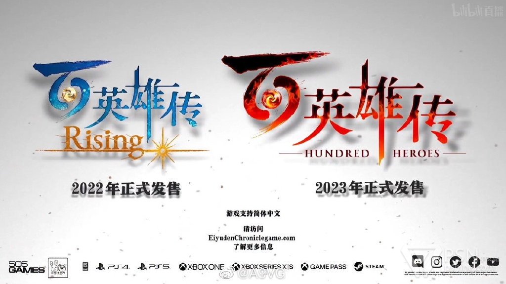《幻想水浒传》精神续作《百英雄传》以及同一世界观下的动作游戏《百英雄传:崛起》宣布将支持中文。《百英雄传》将于2023年上线PC\PS\XBOX平台,《百英雄传:崛起》2022年推出。