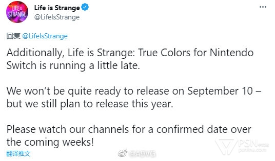 《奇异人生:本色》Switch版宣布延期,新发售日未定,但预计会在今年内推出。其他版本9月10日的发售窗口保持不变。