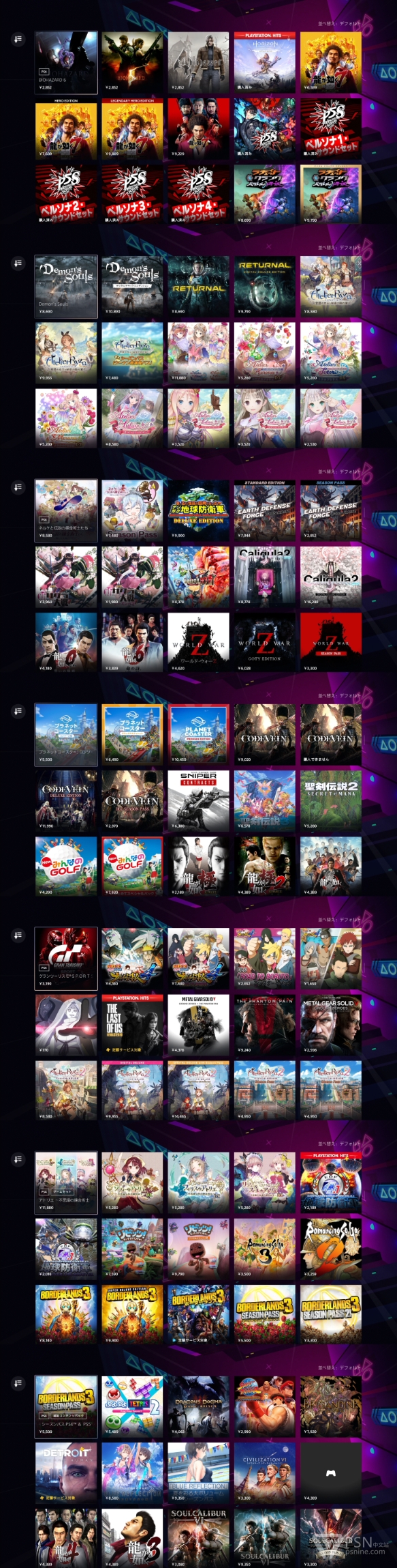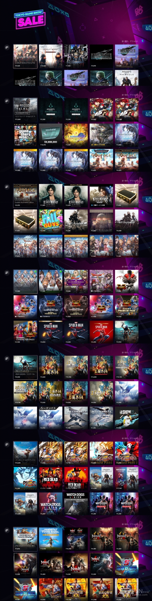 日服TGS折扣专题列表,截了几张图,退出来后就没有了,港服的也没看到,应该有一些是共通的。
