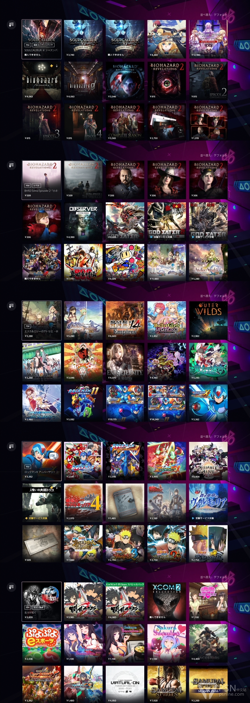 只有游戏列表,没有折扣价格。追加内容部分有很多P系列和DEEMO的DLC。仅供参考。