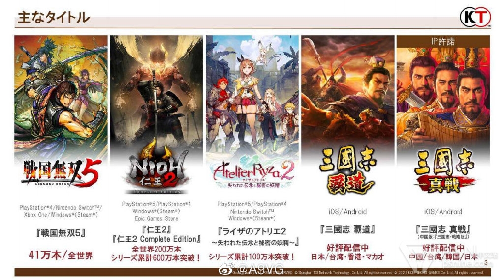 KT在Q2(7月~9月)并没有推出什么值得一提的新作,不过Q1及上一财年发售的作品持续热销,加上手机游戏运营收入增长,IP授权收入也维持高水平,最终实现大幅增收增益。