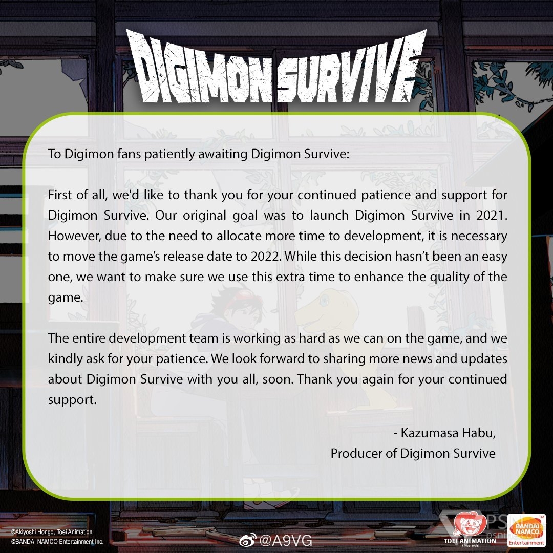 官方正式宣布《数码宝贝:绝境求生》延期至2022年