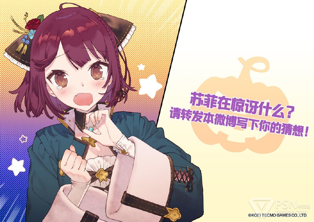 即日起开始举办《苏菲的炼金工房2 ~不可思议梦的炼金术士~》万圣节惊喜活动!图1中苏菲究竟为何如此惊讶呢?关注微博官方号@光荣特库摩游戏 并在原官方号微博转发并写下你的猜想,即可参加抽奖!奖品为NOCO老师新绘插图限定文件夹!心动就快来参加吧~
