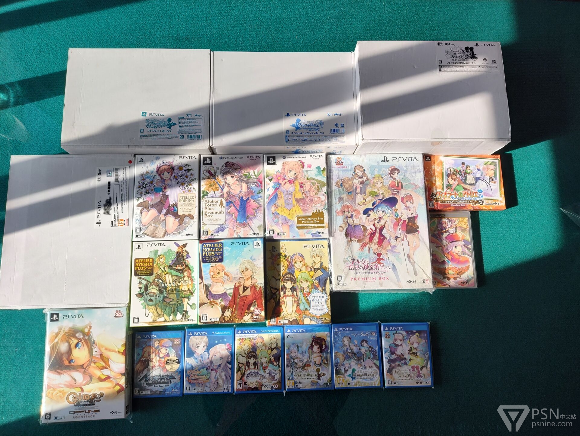 PSV、PS4、PSP、NDS数字版和实体版都算上的话,a18和a19买了五遍,a13、a17买了四遍,a11、a12、a14、a15、a17买了三遍,奈尔克买了两遍,a1、a2、a4、a5、a9、a10、nds外传三部曲、a20、a21、a22各买了一遍。下一步的目标应该是PS3的六部(七部)工作室系列了,至于更老一些的工作室实体,以后也会在计划之中——除了WSC版,想要收一个成色不错的箱说全价格也太吓人了。