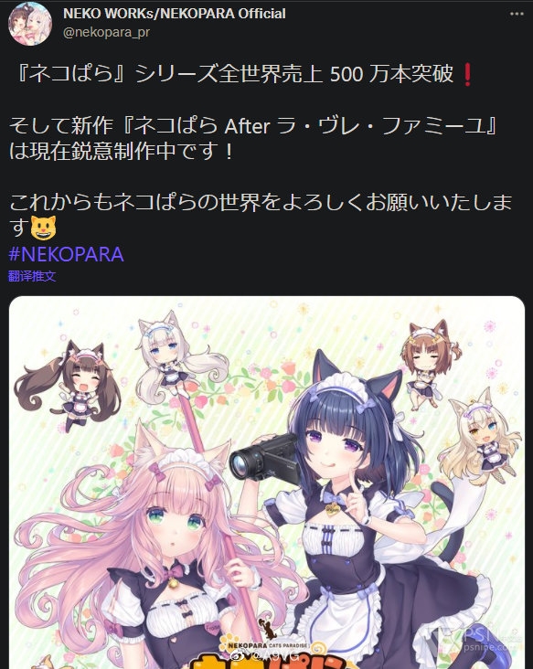 《巧克力与香子兰》(猫娘乐园)官方宣布,系列全球销量突破500万份,最新作《巧克力与香子兰 After La Vrée Famille》正在锐意开发之中。