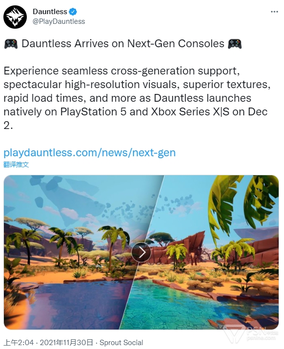 《Dauntless》将于2021年12月2日登陆PS5/Xbox Series。