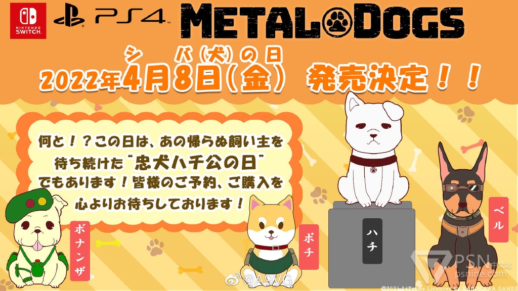 《重装机兵》系列30周年纪念衍生作品《重装机犬(METAL DOGS)》将于2022年4月8日登陆PS4和Switch平台。PC版将同步结束抢先测试阶段,并加入多种全新要素。
