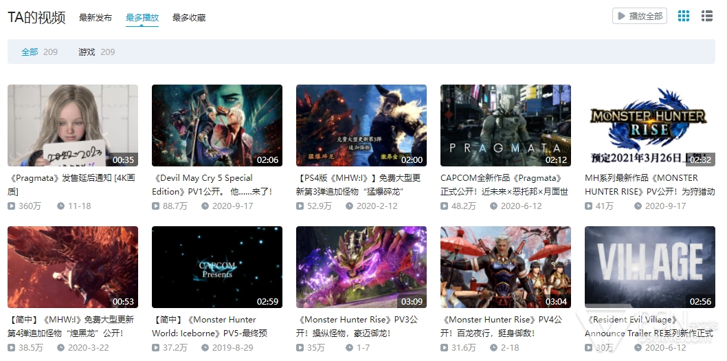 该视频播放量稳居「卡普空亚洲」播放量排行榜之首:是第二名《鬼泣5:特别版》宣传片的播放量四倍;超过了第二名至第七名这6个视频播放量的总和。