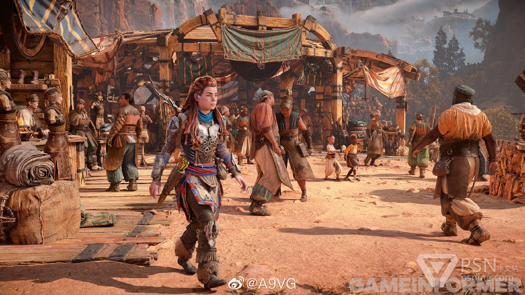 外媒Gameinformer公开五张《地平线 西之绝境》全新截图,展示了一个名为Daunt的新区域。这里将作为一个早期地点,能够让玩家快速掌握各种游戏机制,也是亚罗伊前往西之绝境之前的场景。截图中还展示了市场与酒馆的部分,以此来体现城镇细节。
